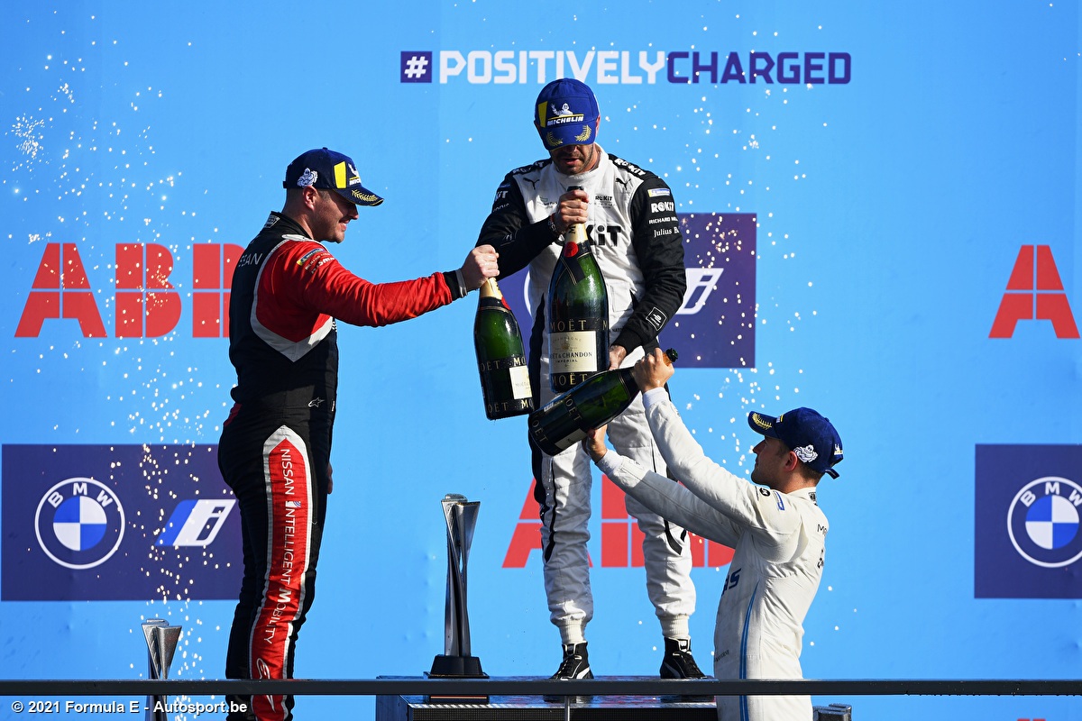 De Vries moest in de laatste minuten nog zwaar verdedigen, al kon hij niets beginnen tegen Sam Bird (Jaguar), die uit het niets de zevende plaats overnam. Toch maakte het niet uit voor de Nederlander, want hij pakte nog steeds genoeg punten om de allereerste wereldkampioen te worden in de Formule E. Mortara eindigt toch nog als tweede in de stand, Dennis blijft derde en Evans vierde. Vandoorne klimt uiteindelijk nog naar een negende plek. Ook bij de teams pakte Mercedes met dit resultaat de titel. Zij blijven Jaguar voor met zeven punten, terwijl DS Techeetah als derde eindigt in de eindstand.