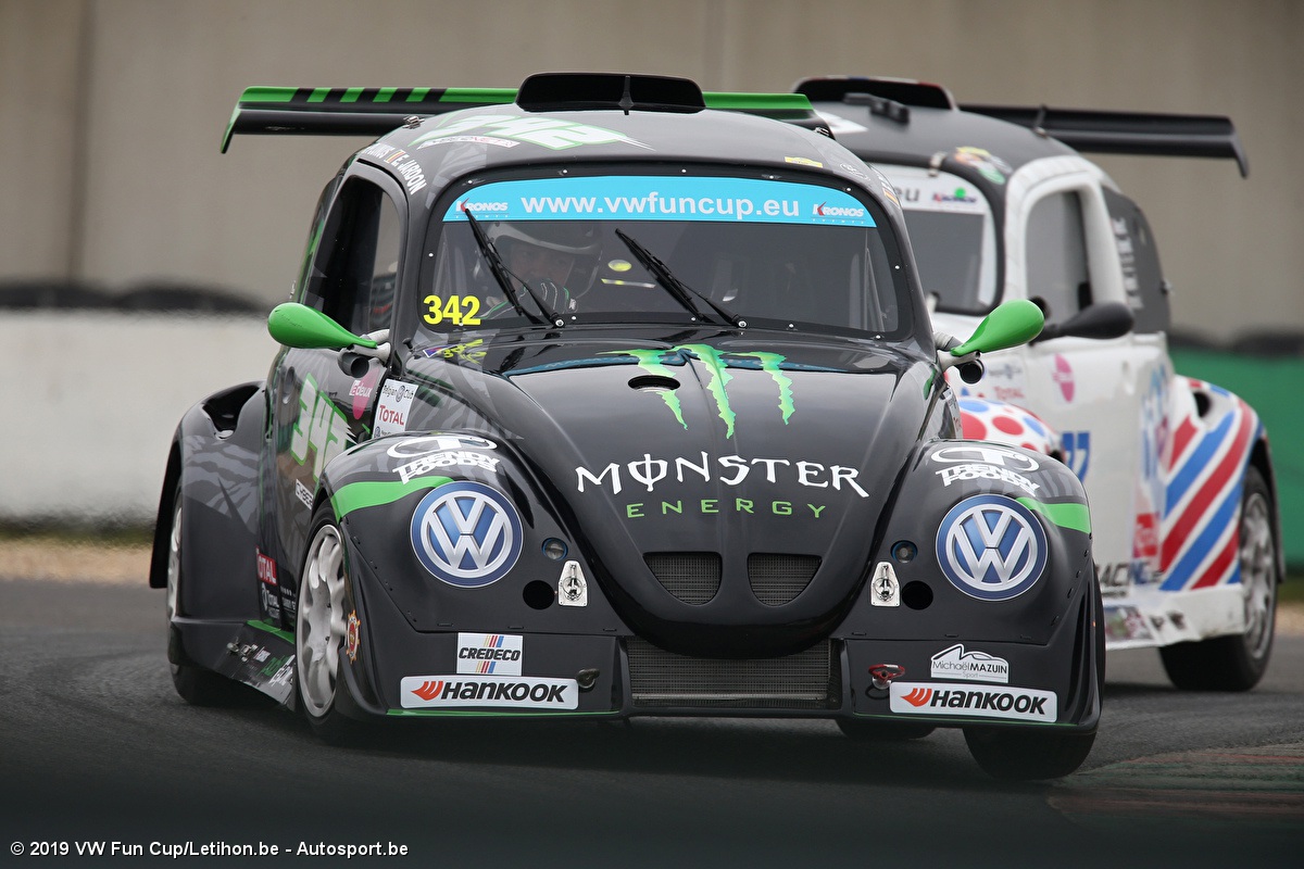 Het duel vond dus niet echt plaats, omdat de #365 Carpass LRE by DRM (Stéphane Lémeret-Philippe Wintgens-Philippe Reynens-Edouard De Braekeleer-Miguel Coppieters) het slachtoffer werd van problemen met de versnellingsbak die de kampioenen van 2018 naar de kleinste podiumtrede verwezen. Dat was goed nieuws voor de #364 van nieuwkomers CG Racing. Aan de zijde van Maxime Musin eindigde Martin Brunet zijn eerste race in de VW Fun Cup dus op een veelbelovende tweede plaats.